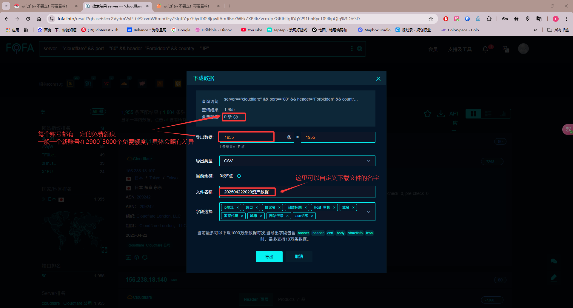 - 通过FOFA网站,找到自己想要地区的ip,FOFA官网 点击前往