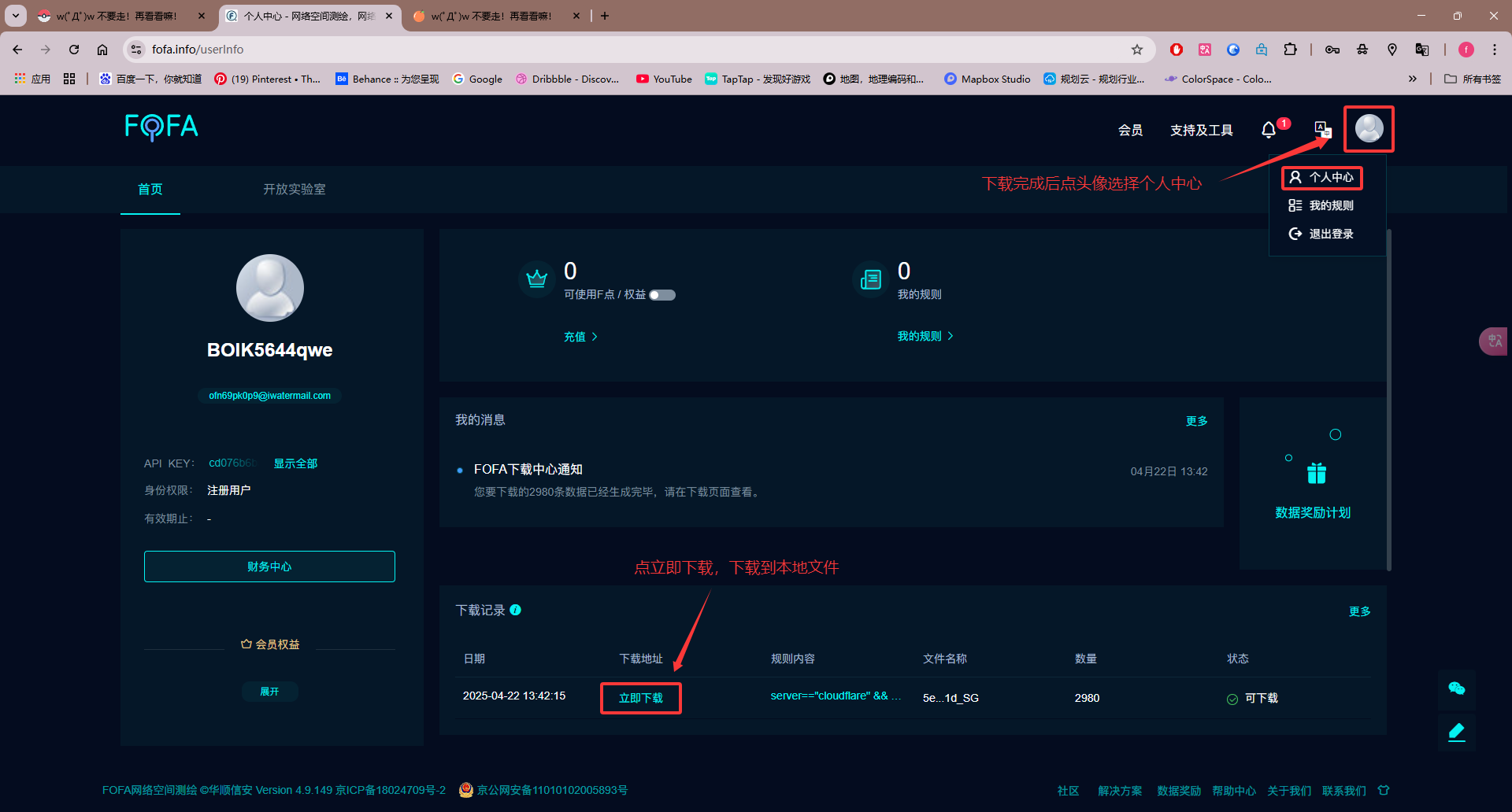 - 使用 临时邮箱网站 登录fofa,并在搜索栏内输入筛选语法