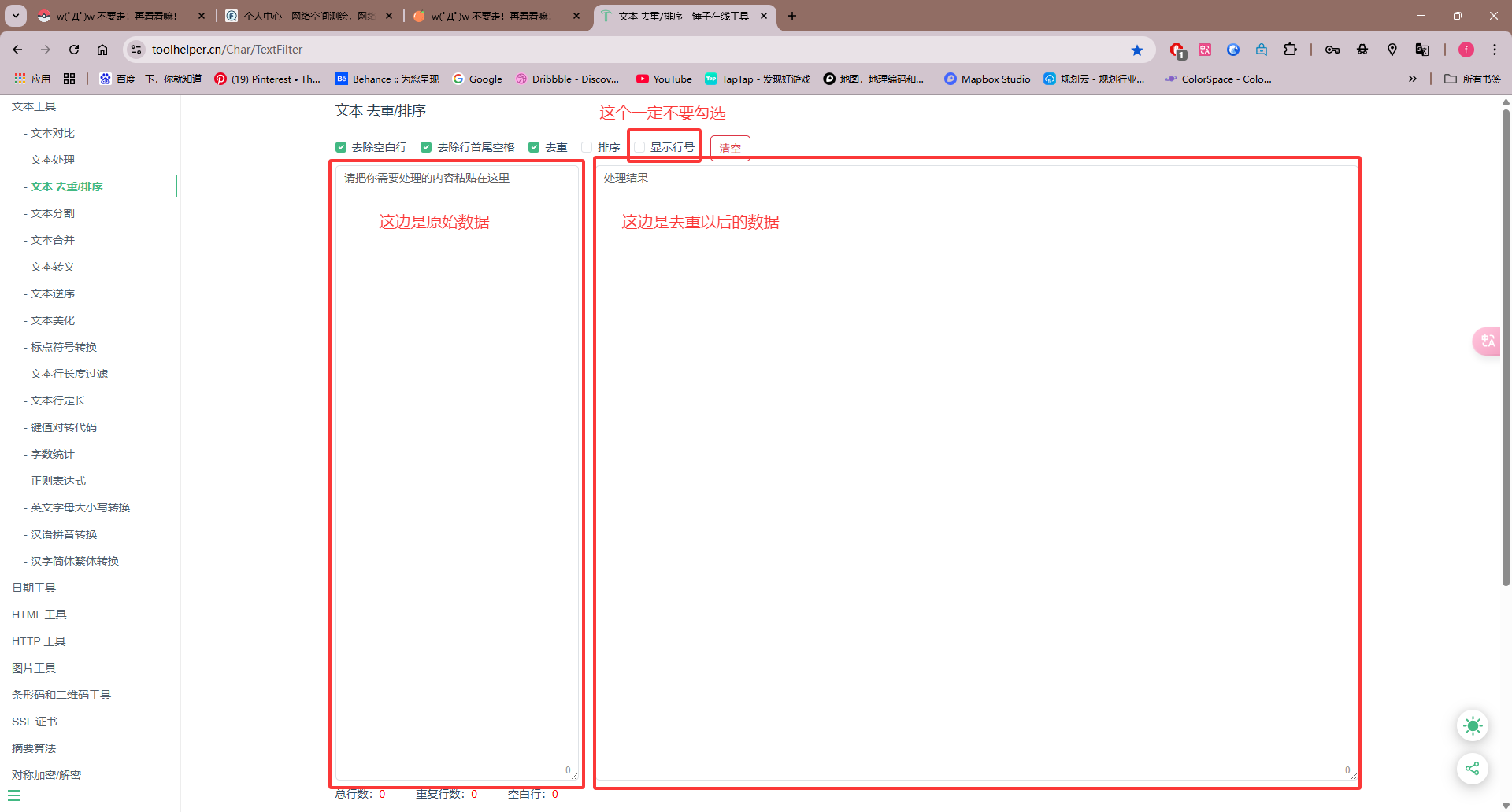 txt文本内容去重,因为下载的ip中可能出现很多个相同的ip,所以需要去重,可以来到去重网址 点击前往