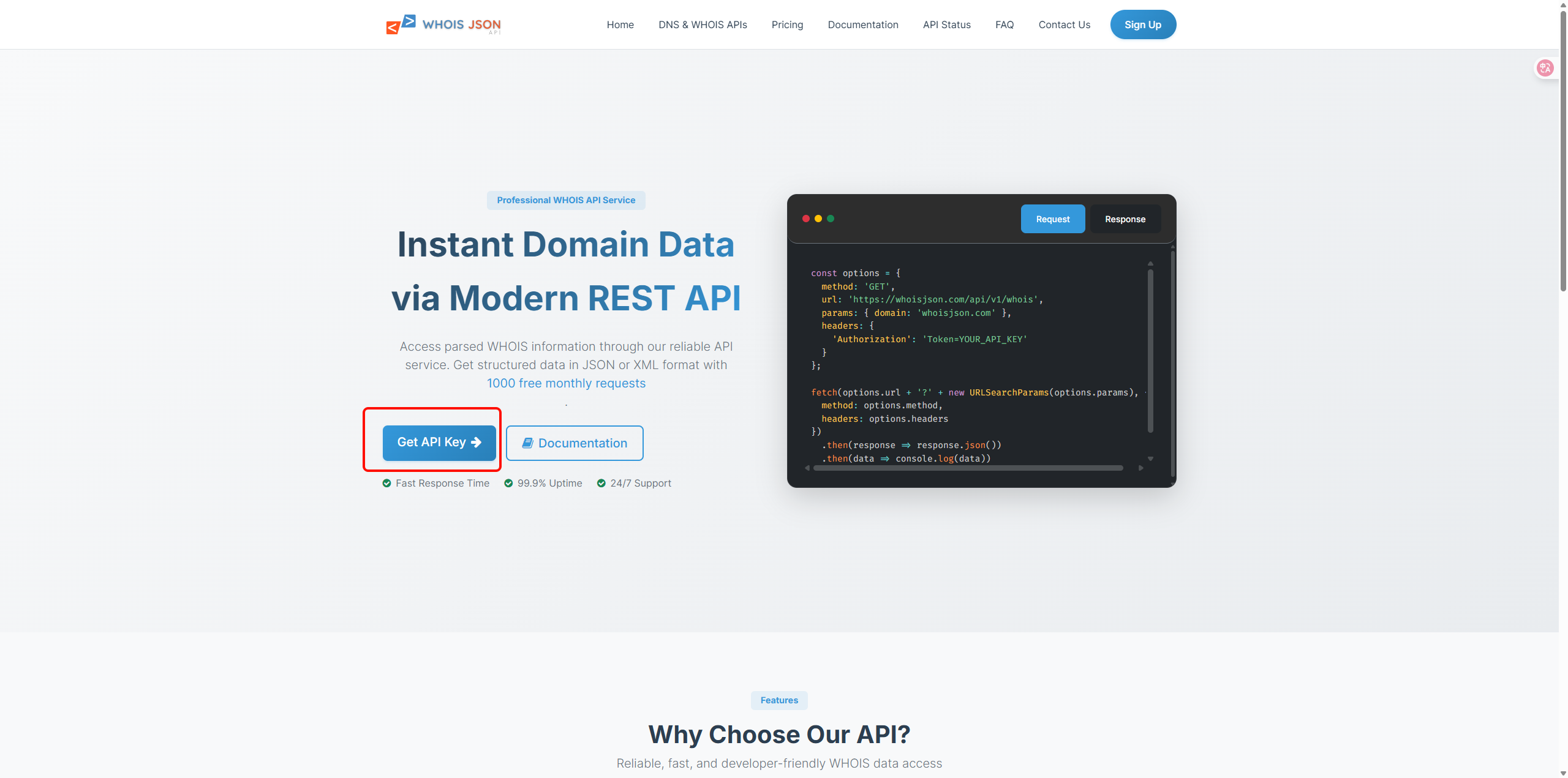 来到https://whoisjson.com/,点击`Get Api Key`,注册账号