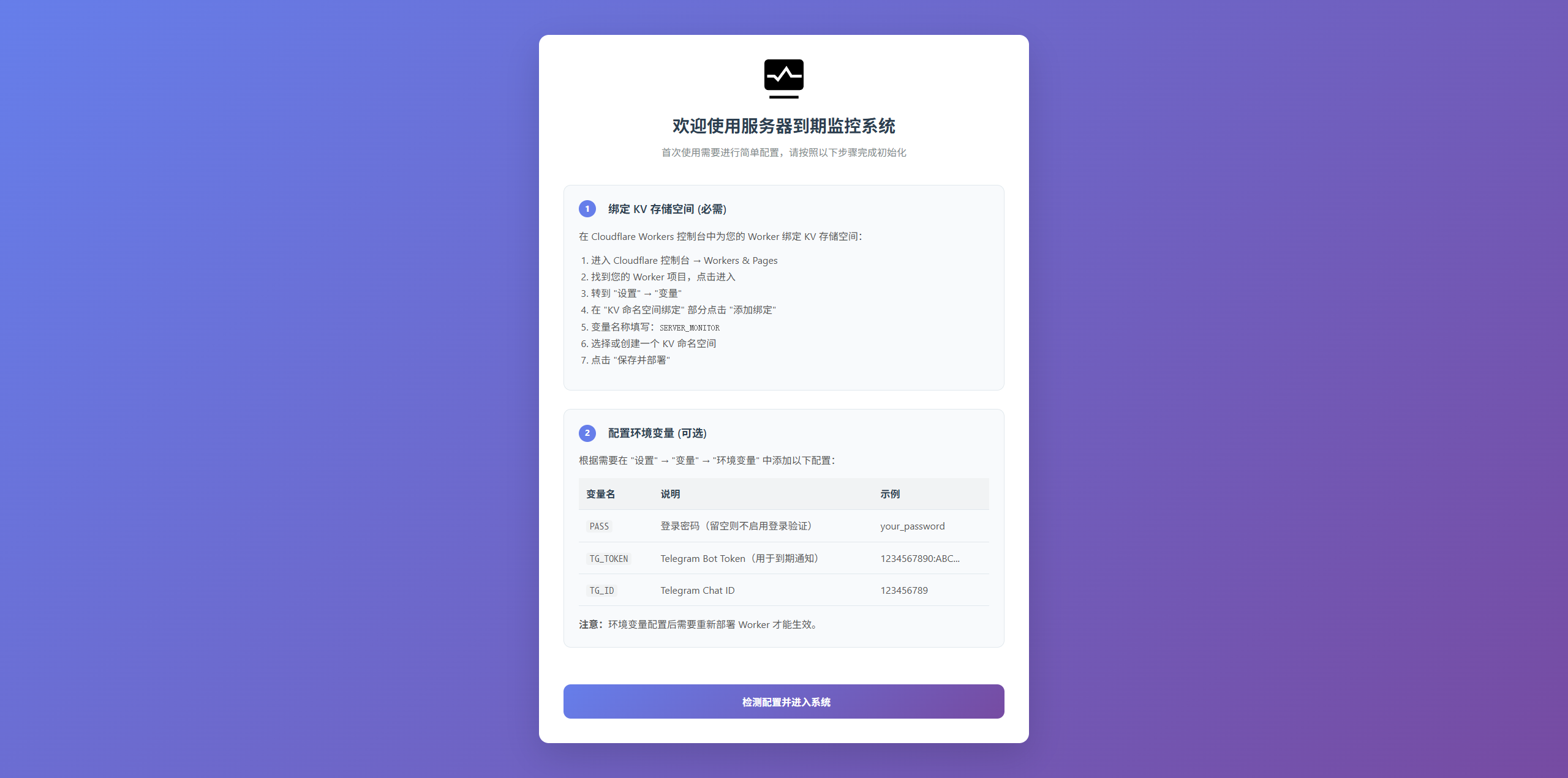通过上述方式绑定完KV之后,返回项目网址,点击检测配置并进入系统,即可来到主界面。