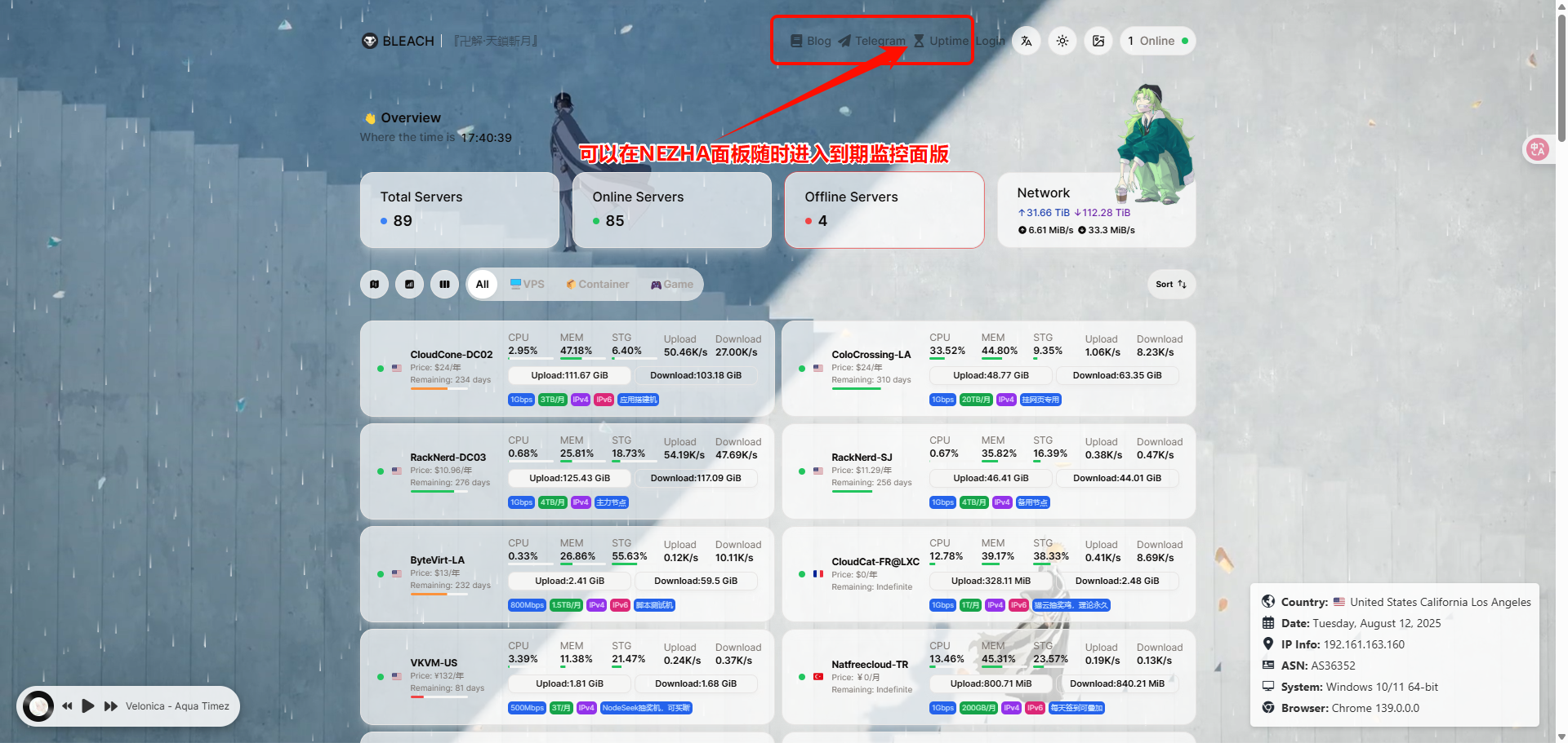 改完之后就可以在NEZHA面板的顶部看到链接图标了,点击即可跳转到到期监控网站。